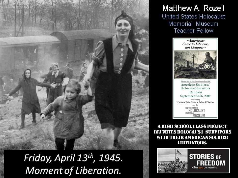 As you have just heard, I am particularly devoted to the mission of the United States Holocaust Memorial Museum’s Teacher Fellowship program. In April I was honored to be in Washington, DC with these fine veterans at the Days of Remembrance ceremonies with over 100 other liberators. Tonight I would like to present you with some snapshots of the people I have encountered in my work, and how the ripple effect has led to these worldwide connections. I also think it is important to place my work in the context of the Museum’s mission and to place it in a perspective that illustrates why we are all gathered here this evening.