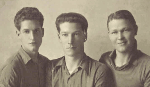 Floyd Dumas (L) and two other escapees, Bill Robb of Scotland and a South African, pose for a portrait while behind enemy lines in Rome, 1944.