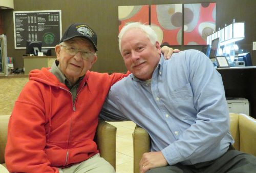 I wanted to ask him if he would like to return to Germany with us this coming April, to the site of the Holocaust train liberation of the Train Near Magdeburg and a monument unveiling for the 75th anniversary, in the presence of survivors and 2nd and 3rd generation descendants of survivors and other American liberators associated with the liberation of the train. And to meet the German schoolkids, one a 17-year-old who became a pen pal for a while, when I told her to write to him with her questions. Of course, he wrote back!