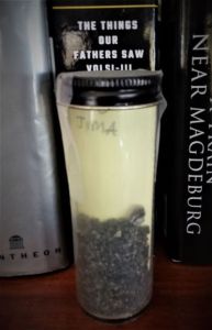 I spent a lot of time interviewing the Marines who were on this tiny island—just eight square miles—of black volcanic sand for a month longer than the 3 days planned to take it. My cousin, a Marine, led a tour there and brought me back some of that sand.