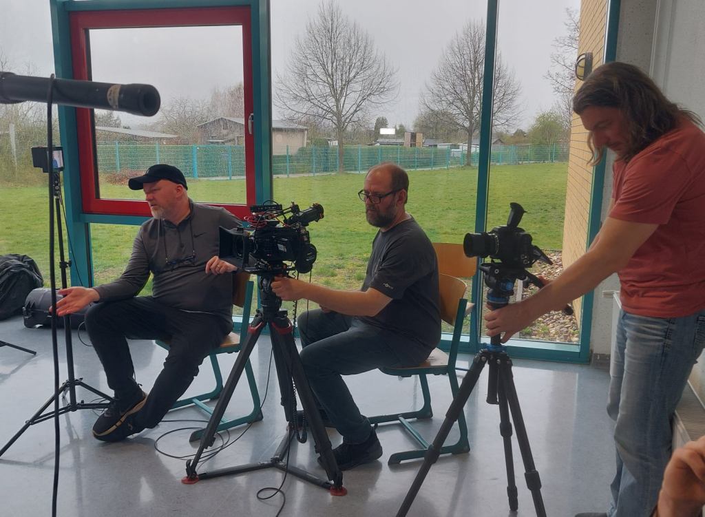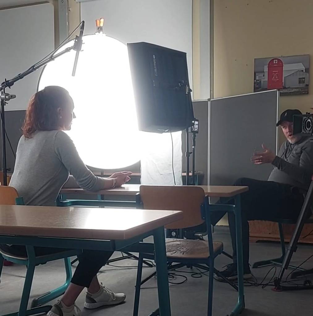 We arrived at the school and met Johanna, and were let in by a custodian, as the students and teachers are on their Easter spring break. I toured the school with her as the guys set up the set, set up in the former classroom of her former history teacher, Karin P. at the end of a long corridor.
