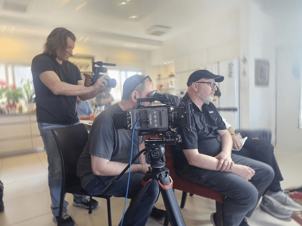 We had lunch and found the kibbutz and modest home of Simcha Berkowitz, his home health aide outside so we would find it. He sat at the table patiently and quietly, not knowing English, smiling beside his wife, who helped him with his hearing aids as they guys set up the shot. He remembered a lot at 12 yrs old or so; like Yaakov, he was from Hungary. Our driver Zvi translated excellently as he spoke in concise, short bites of how the Germans moved into that country in March 1944 and they were herded into the ghetto to await deportation. By a miracle, 40 people were taken off of one of three transports to Auschwitz, and placed on one heading to Austria.