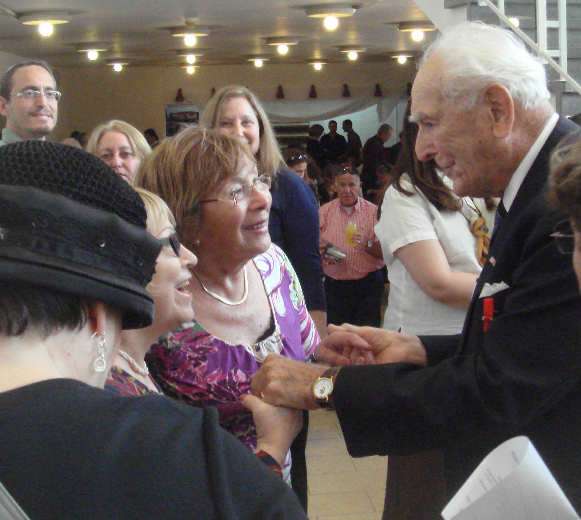 As the film began, I sat in the front row on the women’s side of that gathering, with my wife and the liberators’ daughters. I scanned the audience going back twenty or so rows. They were riveted to the screen. Later, they crowded to the front, the young with cameras poised, all wearing smiles of gratitude, expressions of joy and astonishment, some even appearing dazed and starstruck, for lack of a better term. So many asked, “How did you find us?”, when the answer was, really, “No, your family had found me!” Which is true, some members had found us through my website and blogposts in the later part of the past twenty-five years.