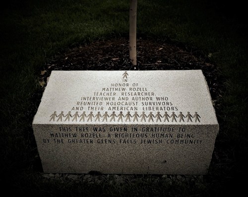 Upon his retirement in 2017, Matthew Rozell was honored in resolutions by the United States Congress, the New York State Senate and Assembly, the Village of Hudson Falls and the City of Glens Falls. The Greater Glens Falls Jewish Community recognized him as a ‘Righteous Human Being’ with a tree planting and monument his hometown village park in 2018, and he has been honored by the Washington County Historical Society.