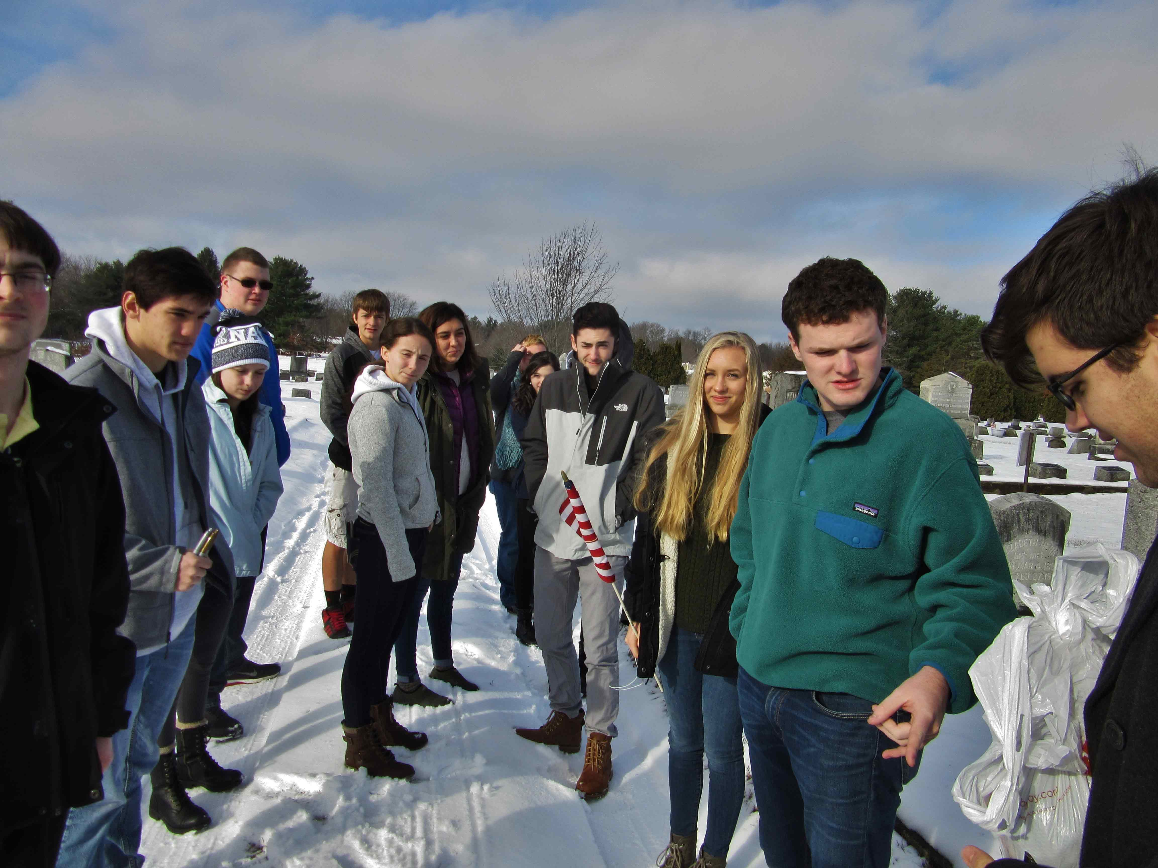 HUDSON FALLS — On a windy Tuesday morning, in a snow-covered cemetery, Matt Rozell’s history class took a somber turn.