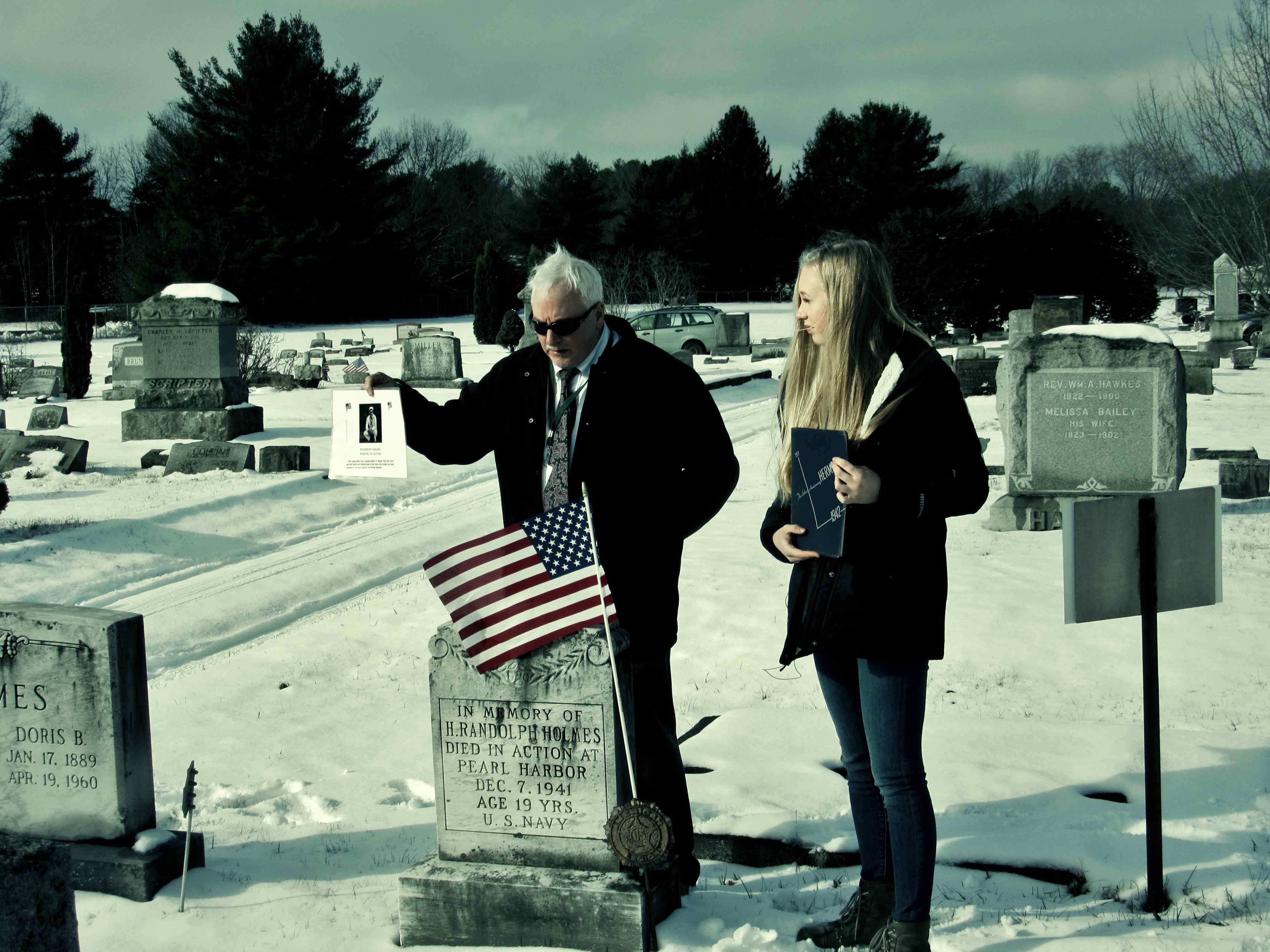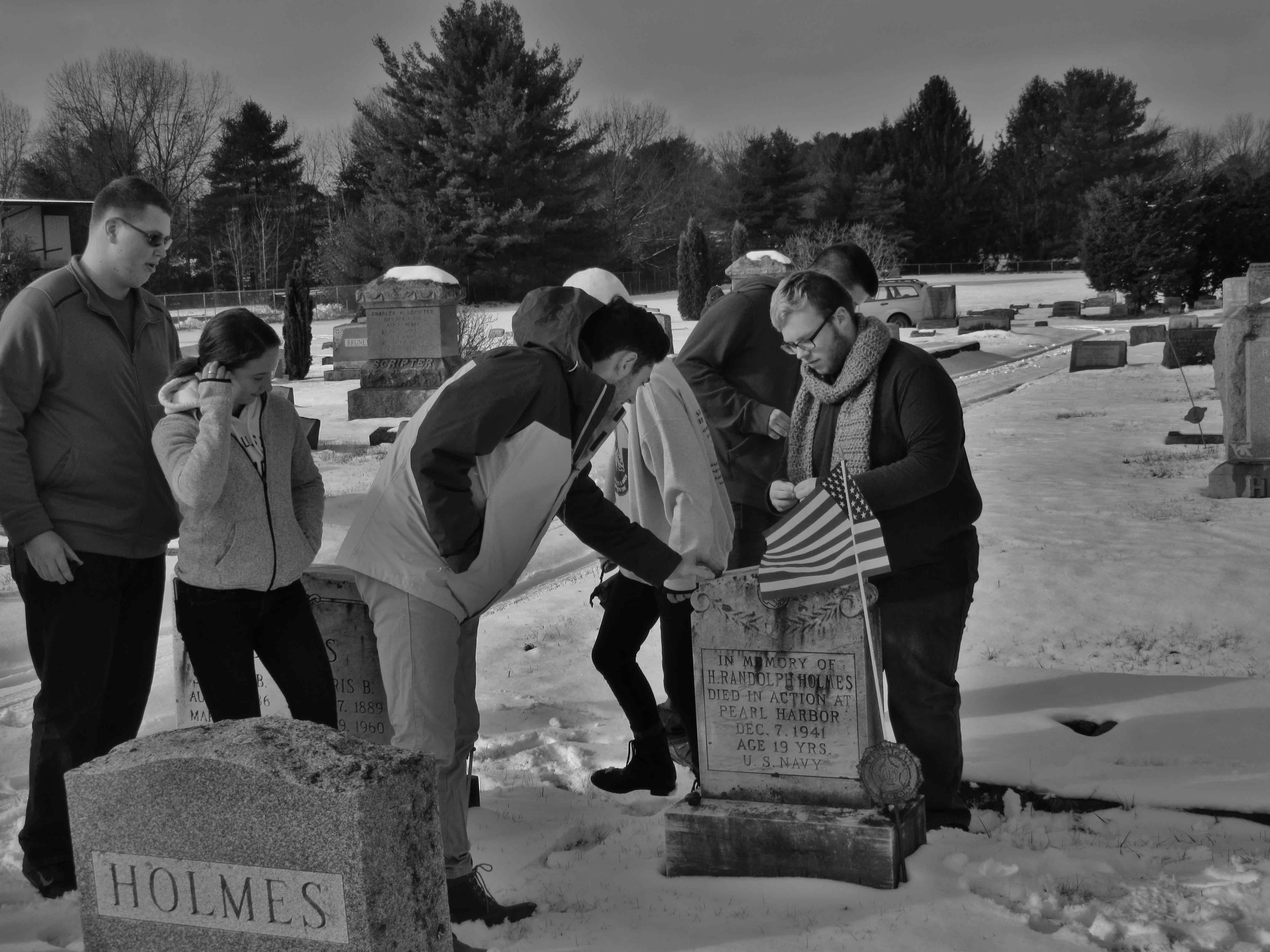 Rozell and about 25 Hudson Falls High School seniors stood in the fresh snow at a memorial stone that read, “H. Randolph Holmes,” followed by the words, “Died in action at Pearl Harbor,” “Age 19 yrs” and “U.S. Navy.”