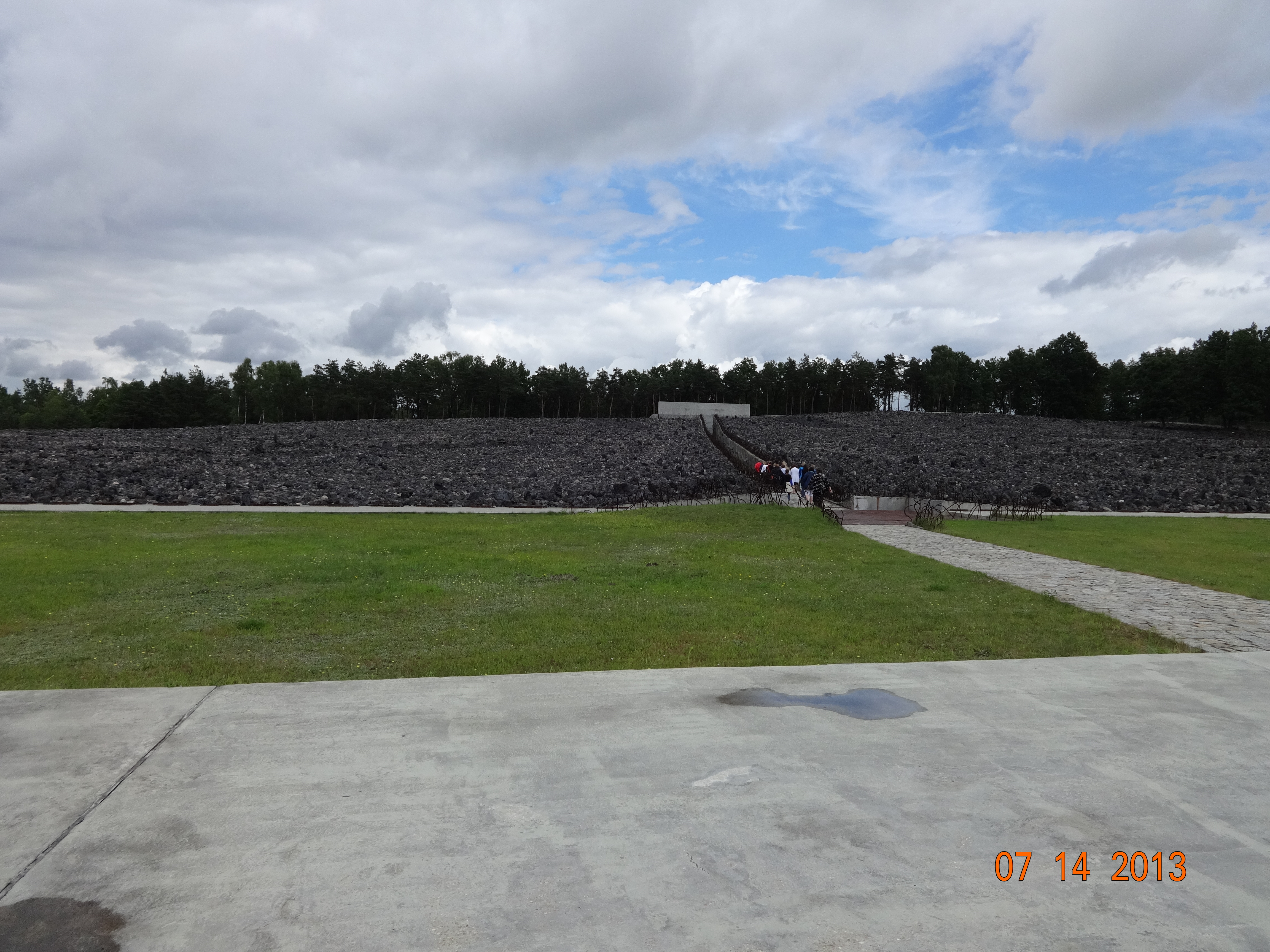 The women in our group enter the memorial for a private ceremony. The seven men walk the perimeter, near the hillside. The memorial project leaders were told that during the Operation Reinhard actions, some of the locals would picnic on the hillside behind us as transports pulled in to discharge the terrified and doomed victims.